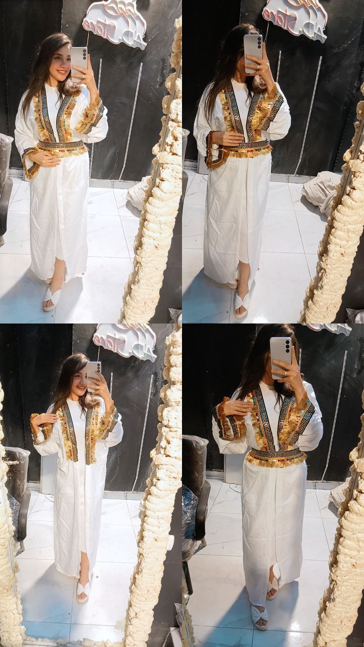هذا القفطان مصمم خصيصًا ليبرز جمالك ويمنحك إطلالة رائعة في كل مرة ترتديه. مع حزامه الأنيق، يمكنك تحديد شكل جسمك بطريقة رائعة، مما يجعلك تشعرين بالثقة والجمال. لا تفوتي الفرصة لتكوني الأجمل في كل مناسبة!